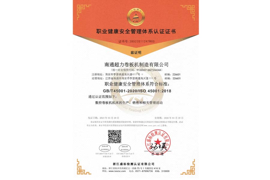 職業健康管理體系認證證書