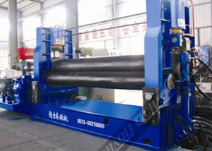 用于常溫狀態(tài)下將板材卷成圓筒形、圓弧形、圓錐形。性能優(yōu)越,結構緊湊、操作方便。上輥升降、翻倒裝置采用液壓驅動。主傳動由電機通過三角帶傳遞,減速器帶動兩下輥驅動,卷制柔性好。采用PLC可編程顯示器控制,上輥升降采用位移傳感器檢,測數顯表顯示。提高產品效率和產品質量,翻倒架采用液壓翻倒。